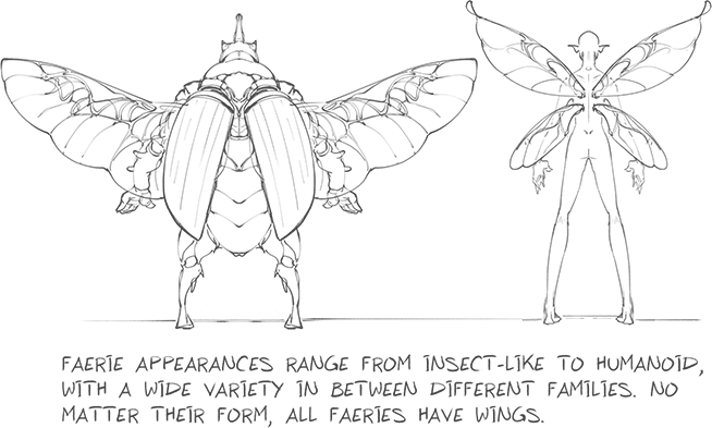 Фейри — это крылатые гуманоидные существа с насекомоподобными чертами.