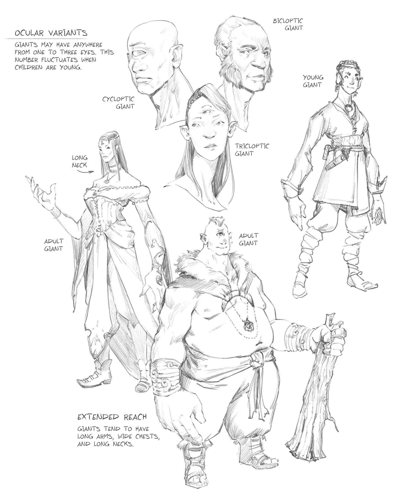 Великаны — это крупные гуманоиды с широкими плечами, длинными руками и имеющими от одного до трех глаз.