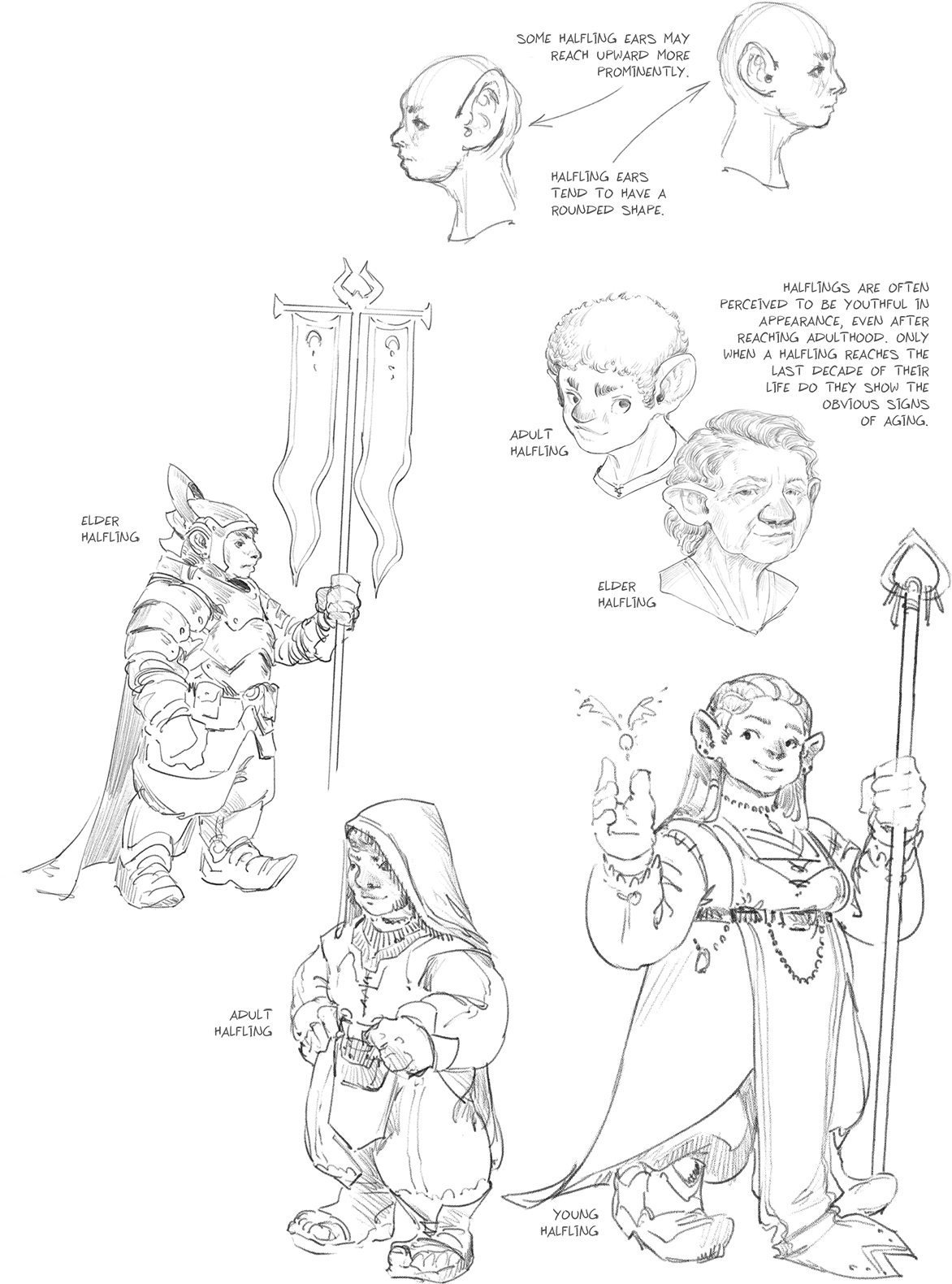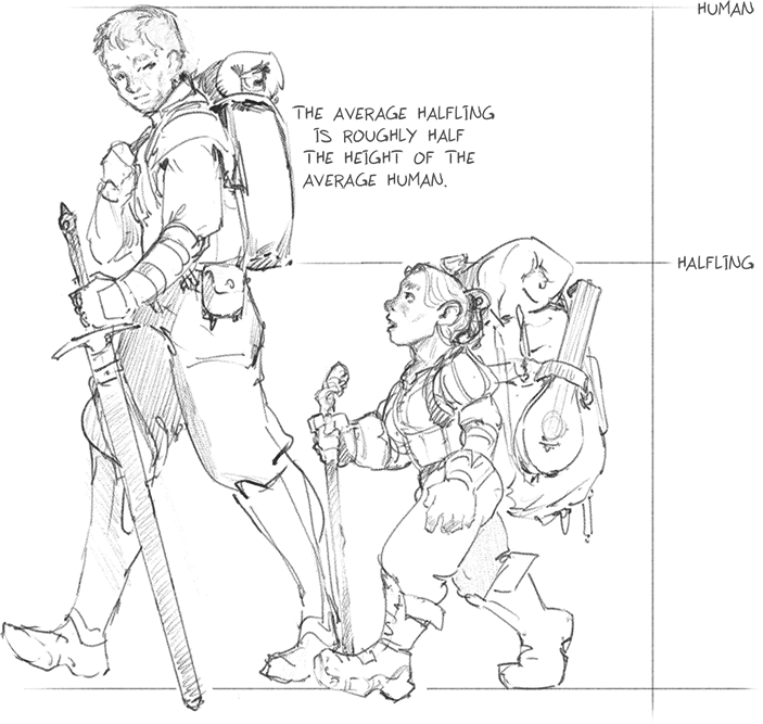 Полурослики — низкорослые гуманоиды с большими мохнатыми ступнями и заметными округлыми ушами.