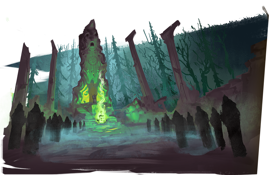 Культисты собираются у символа павших богов и костра, пылающего болезненно-зелёным пламенем.