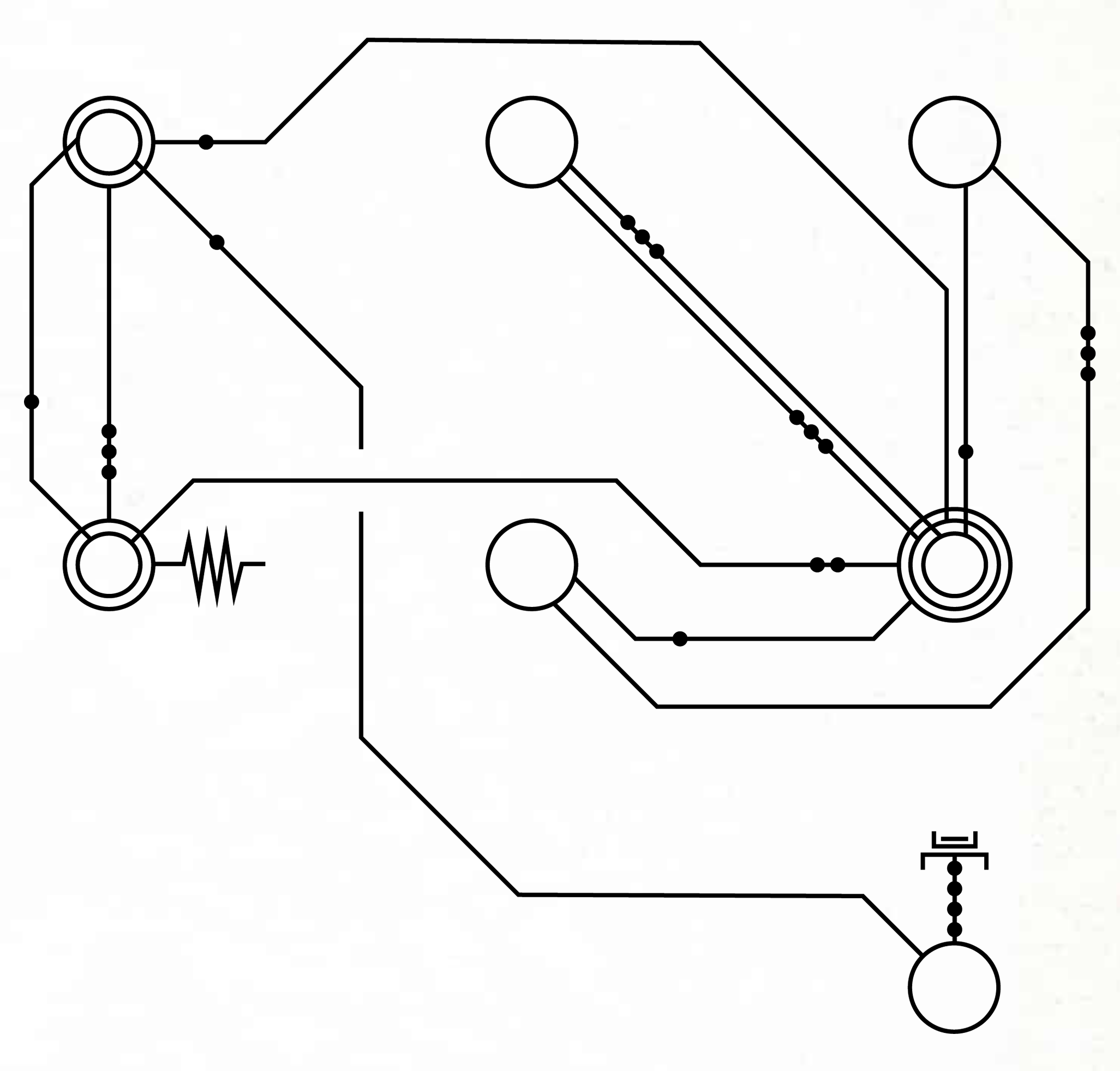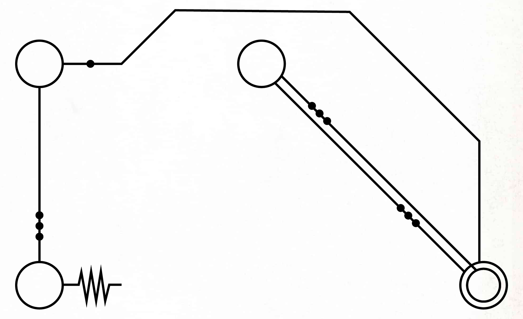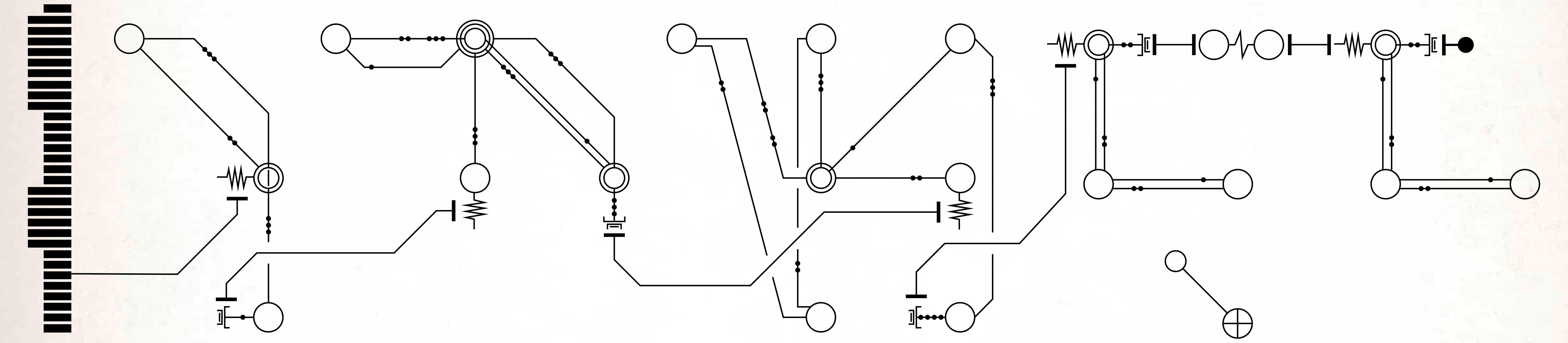 Во-первых, мы обозначаем начало предложения с помощью соединителя, сложной серии точек пайки, где кходеры могут соединять одну цепь предложения с другой. Пример соединителя можно увидеть здесь; различная длина его полос не имеет никакого значения.