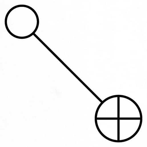 Чтобы начать создание слова “Материнская”, нарисуйте один узел (круг) и соедините его с индикатором заряда (линией). Это называется узлом заряда и указывает, где начинается слово. Обратите внимание на положение узла заряда для слова, которое вы пишете, по отношению к другим узлам.